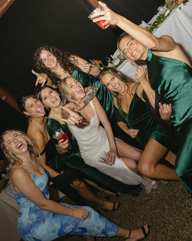 And don’t even get me started on their bridal party—they understood the assignment. Liv’s bridesmaids brought the hype and then some. At one point, they even joked about being “ghouls in a swamp” and had everyone cracking up. Such a core memory moment! Also, major shoutout to Studio FRWD for hair and makeup magic. Even with the misty rain in the air all day long, every single one of the gals looked absolutely stunning!