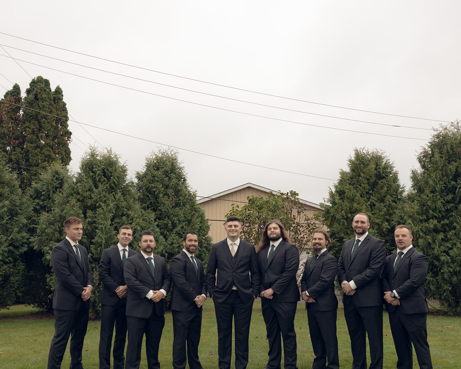 Nick and his guys kept it timeless with black suits, with Nick wearing a tan tie while his groomsmen rocked emerald ties to match the bridesmaids. It all looked so cohesive and intentional without feeling overly matchy.